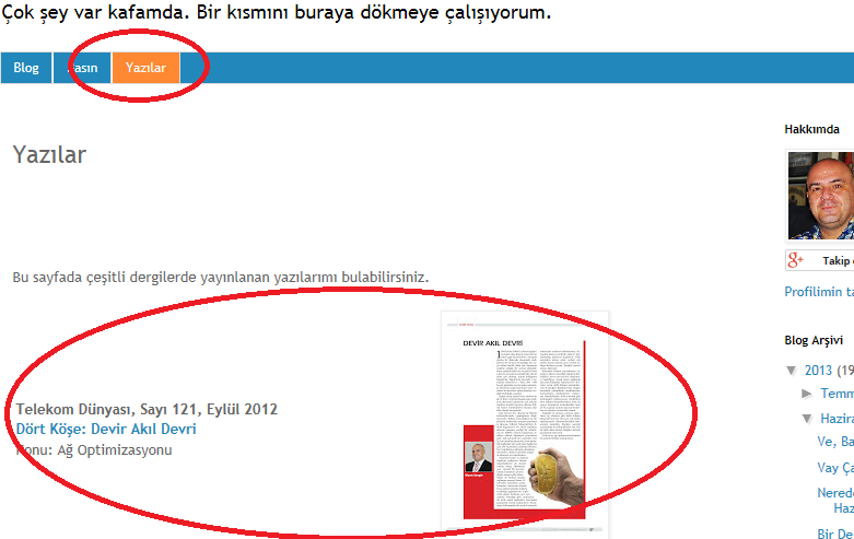 Sonra sırasıyla Telekom Dünyası ve Hardware Plus‘ta köşelerim yayınlanmaya başladı. Oraya yazdıklarımı da buradan paylaşmak istedim. Görsel olarak güzel olsun, dergideki havayı aynen yansıtsın diye Yazılar diye bir yan sayfa açtım. İşte orada hayati hatayı yaptım. Düzensiz bloğa düzen girmeye kalktı.